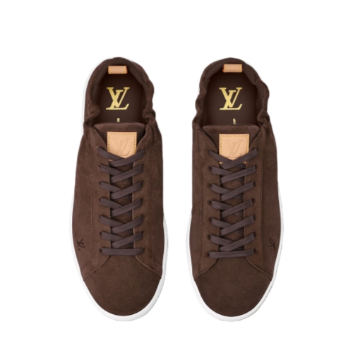 Ultra-soft suede calf leather complements the design of the LV Soft sneaker. This model has a modern construction, combining laces with an elasticized heel for an easy, slip-on fit. It is finished with refined details, including a back loop and LV Initials label in natural leather and a Vuitton signature created by Pharrell Williams at the back.