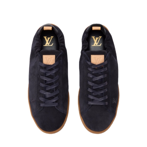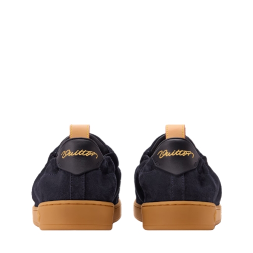The LV Soft sneaker comes in supple suede calfskin with trim in the House's emblematic natural leather. In addition to laces, it features an elasticized heel for an easy, slip-on fit, and a sacchetto construction for lightness and comfort. It bears the LV Initials on the side and a Pharrell Williams-designed Vuitton signature at the back.
