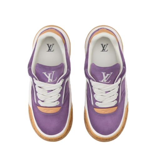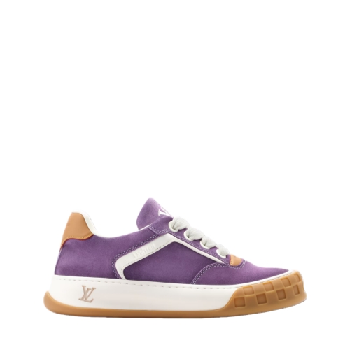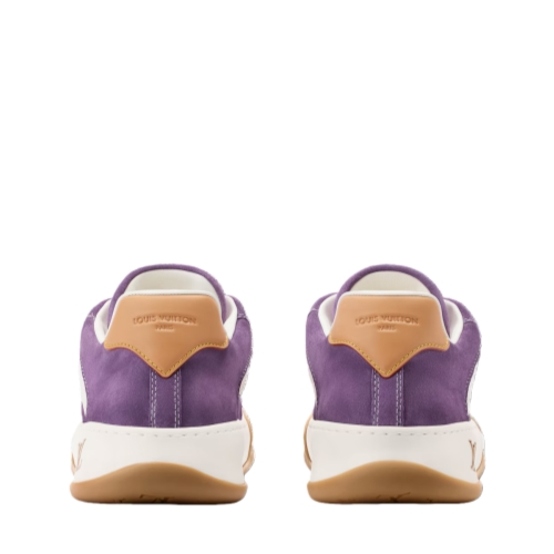 This edition of the LV Tilted sneaker is made of suede calf leather with a sprayed finish, which enhances the vibrancy of the colors. Graphic white trim and laces highlight the bold design of this model, which nods to the early 2000s. The tongue and outsole bear the distinctive tilted LV Initials signature.