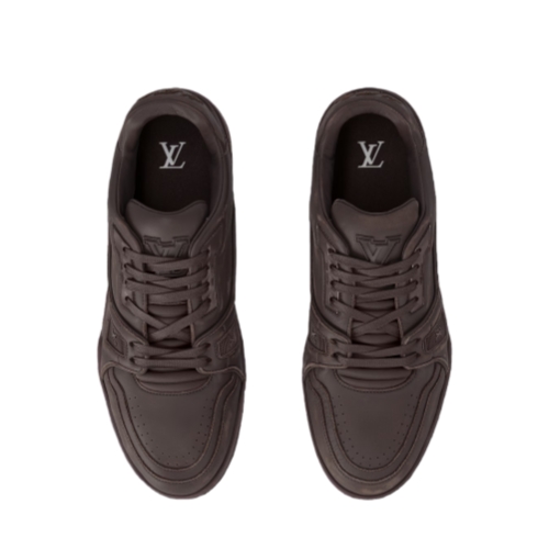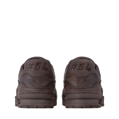 The iconic LV Trainer sneaker is revisited this season in supple calf leather with a slightly distressed, vintage look. The effect is complemented by embroidered signatures: Louis Vuitton in script lettering on the side and #54 at the back, referring to 1854, when the House was founded. The tone-on-tone rubber outsole is decorated with three Monogram Flowers.