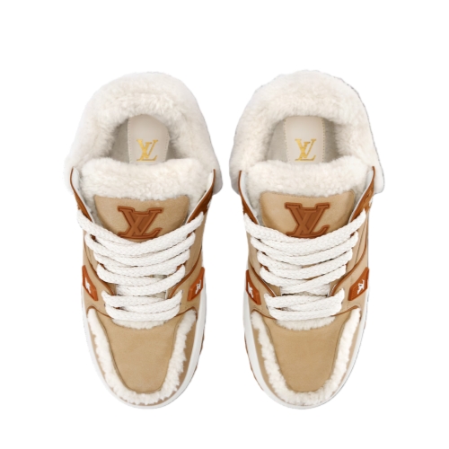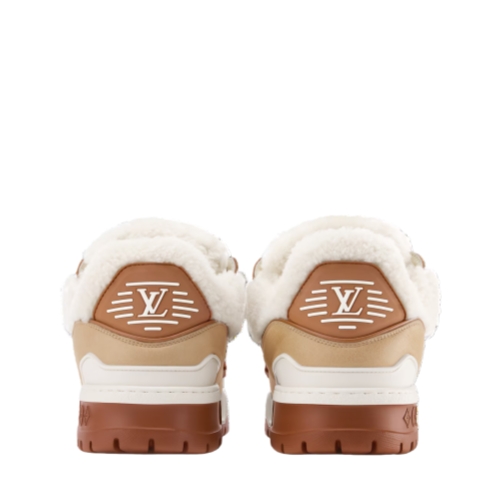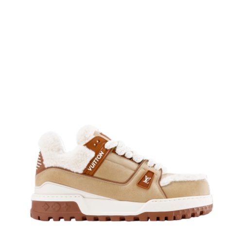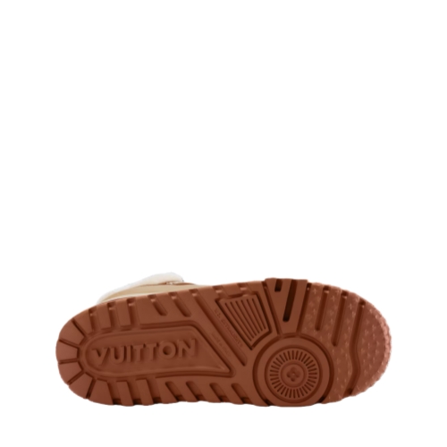 For the LV Ski capsule, the LV Trainer Maxi sneaker comes in nubuck leather, which is both trimmed and lined with soft, warm shearling. Inspired by the cult LV Trainer sneaker, this model is distinguished by its oversized fit and chunky outsole in lightweight EVA. It is the perfect choice to relax in style after a day's skiing.