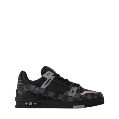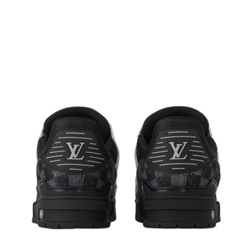This edition of the LV Trainer sneaker pairs Damier denim with smooth calf leather. The combination of materials highlights this model's elaborately constructed upper. Rubber signatures and a technical rubber outsole complete this cult design, which was originally created by Virgil Abloh.