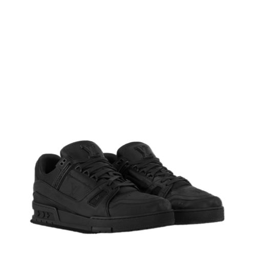 The LV Trainer sneaker is reinterpreted this season in a smart monochrome version in grained calf leather partially decorated with the Monogram pattern. Originally designed by Virgil Abloh, this iconic model was inspired by vintage basketball sneakers. It is notable for its rubber signatures and elaborately constructed upper, made of more than 80 pieces