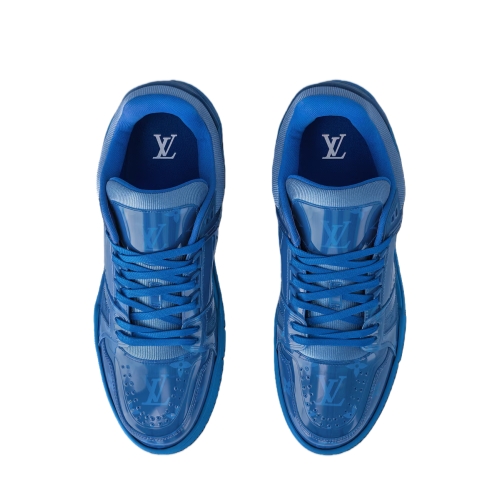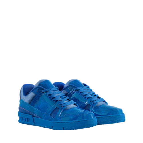 Coordinating with the Spring 2025 men's collection, this edition of the LV Trainer sneaker comes in translucent PVC printed with the Monogram pattern. Both the laces and the outsole are color-matched to the upper, creating a striking total look. This model, which was inspired by vintage basketball sneakers, is complemented by rubber signatures, including the LV Initials.