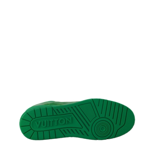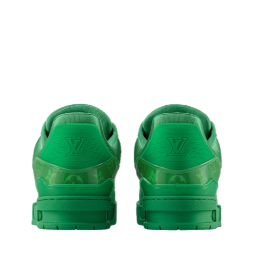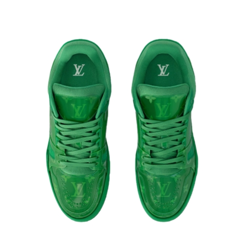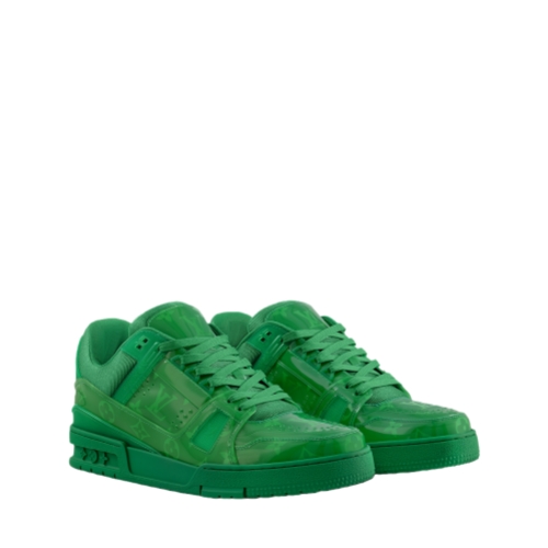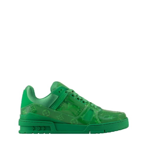 Coordinating with the Spring 2025 men's collection, this edition of the LV Trainer sneaker comes in translucent PVC printed with the Monogram pattern. Both the laces and the outsole are color-matched to the upper, creating a striking total look. This model, which was inspired by vintage basketball sneakers, is complemented by rubber signatures, including the LV Initials.