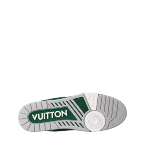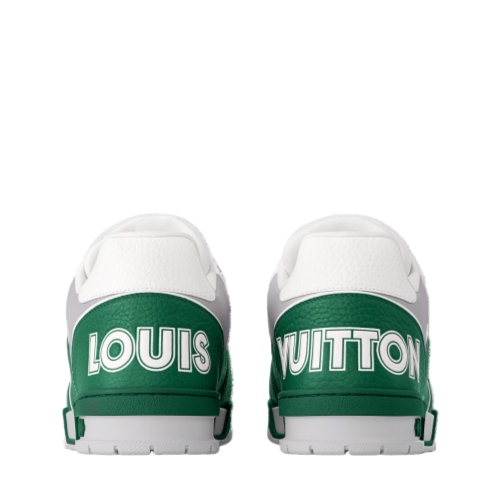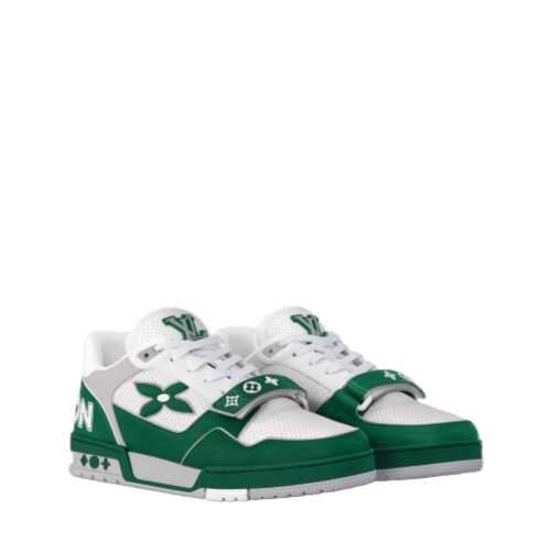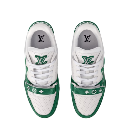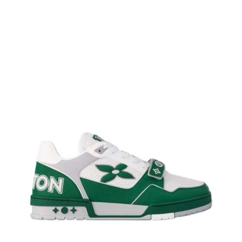 The iconic LV Trainer sneaker is revisited this season in smooth calf leather decorated with pinpoint perforations. Inspired by vintage basketball sneakers, this model is notable for its elaborately constructed upper and its multiple signature details. These include a Monogram Flower on the side and an asymmetric Louis and Vuitton signature at the back.