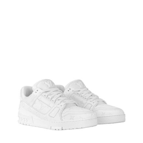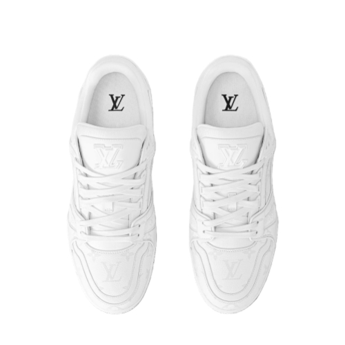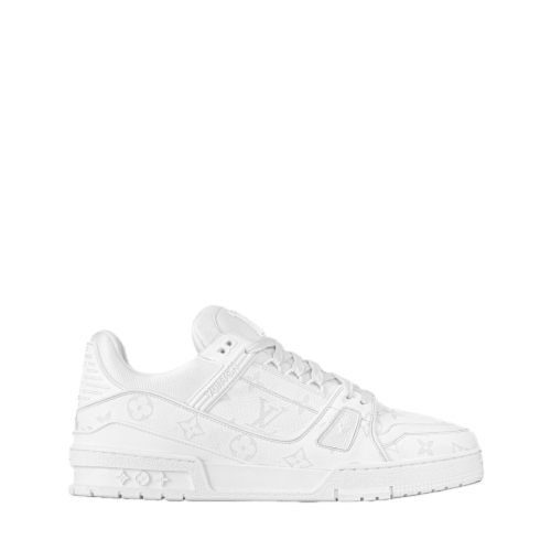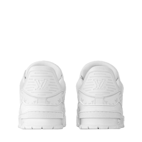 The LV Trainer sneaker is reinterpreted this season in a smart monochrome version in grained calf leather partially decorated with the Monogram pattern. Originally designed by Virgil Abloh, this iconic model was inspired by vintage basketball sneakers. It is notable for its rubber signatures and elaborately constructed upper, made of more than 80 pieces