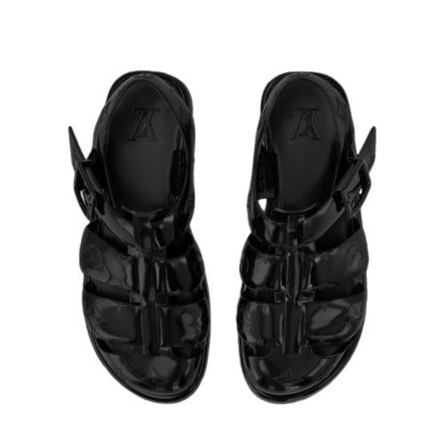 The LV Venice sandal is a fisherman-style model in rubber decorated with the House's signature Monogram pattern. It features a single strap, which is adjusted with a Monogram Flower buckle. This model has a padded insole and an extremely lightweight rubber outsole, which make it particularly comfortable to wear.