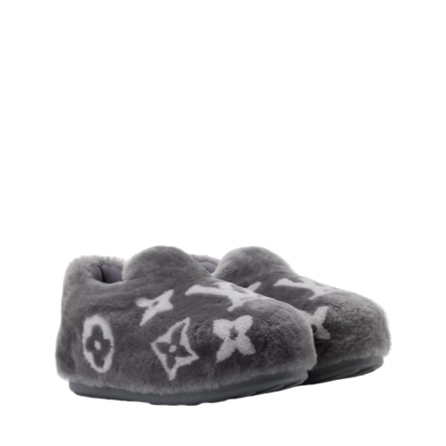 The LV Yeti slip-on comes in soft, warm shearling, into which the Monogram pattern is integrated using the intarsia technique, which requires exceptional craftsmanship. Inspired by the Japanese tradition of removing shoes on entering a building, this model replicates the easy fit and cozy feel that are fundamental to Japanese streetwear. Perfect for après-ski, this style is finished with a rubber footprint outsole.