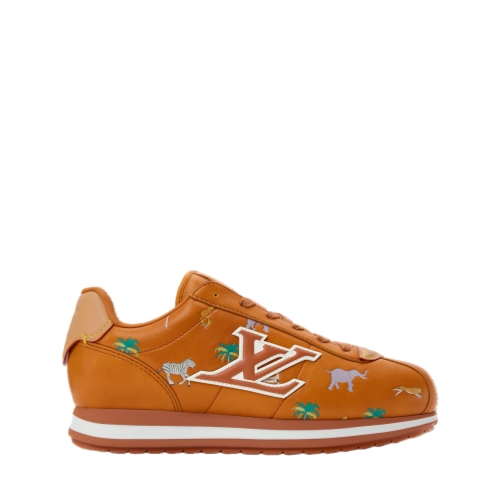 The Louis Vuitton x The Darjeeling Limited LV Buttersoft sneaker is a special edition inspired by the bespoke Louis Vuitton luggage featured in the 2007 movie. The calfskin upper is printed with a tapestry of cross-continental flora and fauna, complementing the dynamic LV Initials on the side. Designed by Men's Creative Director Pharrell Williams, this model nods to the 1960s, when sneakers first transitioned from sport into fashion.