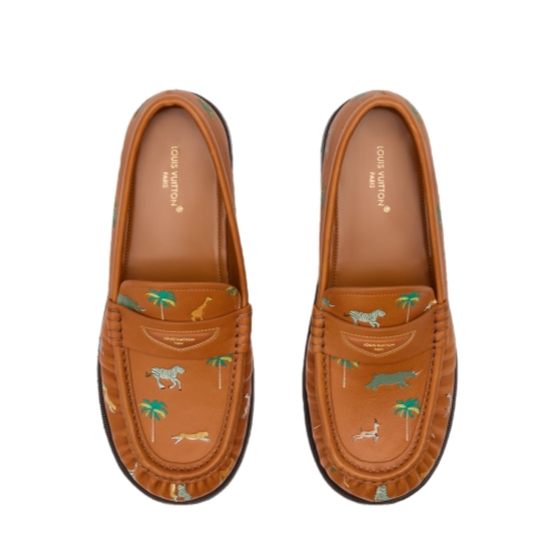 The Louis Vuitton x The Darjeeling Limited LV Jazz loafer takes inspiration from the luggage created by the House for the 2007 movie, set in India. The upper in fine calf leather is printed with a tapestry of cross-continental flora and fauna, a key theme of the Spring-Summer 2026 men's show, turning this elegant shoe into a bold fashion statement.