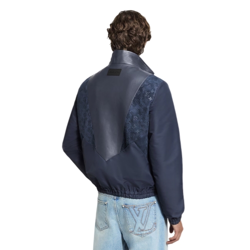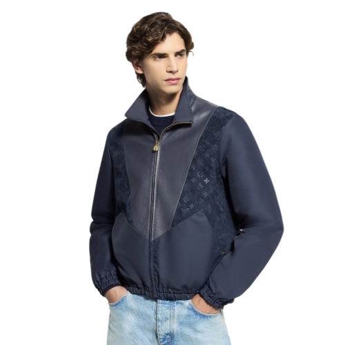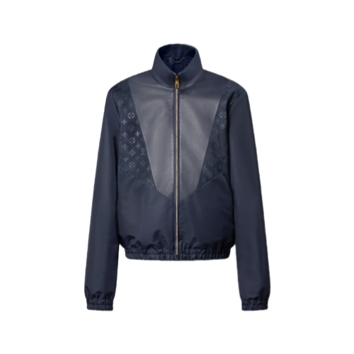 This dark navy tracksuit top offers a luxurious twist on a casual silhouette, with sporty inserts in supple Napa leather and Monogram-debossed suede accenting the technical nylon body. With its sophisticated play of textures, this timeless and contemporary mid-season layer is easy to style with everyday looks.
