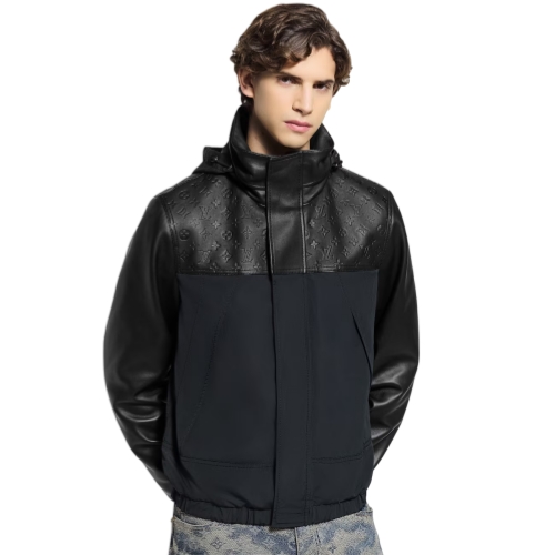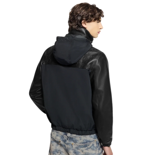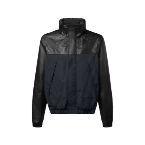 The iconic windbreaker is updated this season in a chic mix of black ripstop nylon and butter-soft Napa leather. It has a leather yoke adorned with debossed Monogram signatures, a leather stand collar with a packable hood and supple leather sleeves. An elasticated waist and cuffs and roomy pockets seamlessly blend comfort with style.