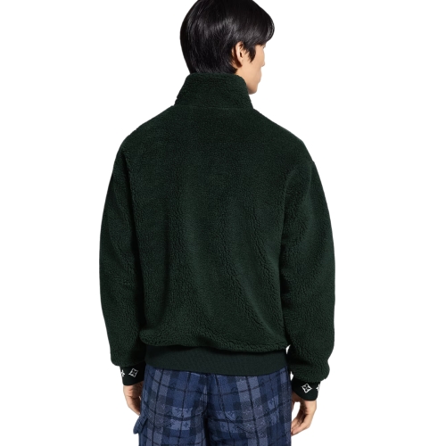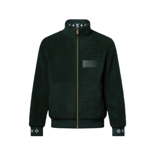 This timeless fleece blouson in refined dark green tones is a versatile layer for cold days. A contrasting jacquard Monogram subtly signs the cuffs and the inside of the collar, while a classic leather patch with debossed Louis Vuitton lettering embellishes the chest. This piece has a technical lining featuring an allover Monogram and can be worn as an outer layer.