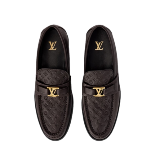 The emblematic Major loafer is revisited this season in smooth calf leather with a subtly contrasting vamp in Monogram-embossed leather, which is signed with an LV Initials accessory. A testament to the House's craftsmanship, this model features a traditional Blake construction, while the vamp is stitched by hand. The leather and rubber outsole offers comfort and durability.