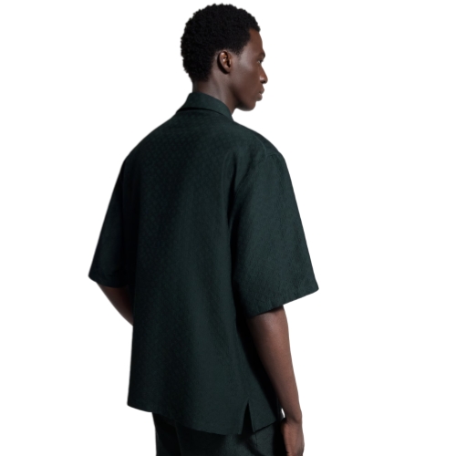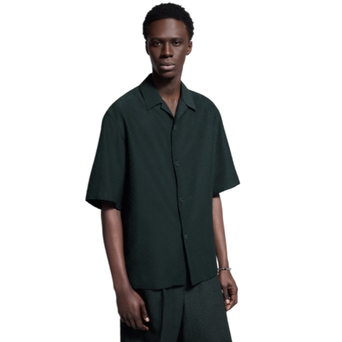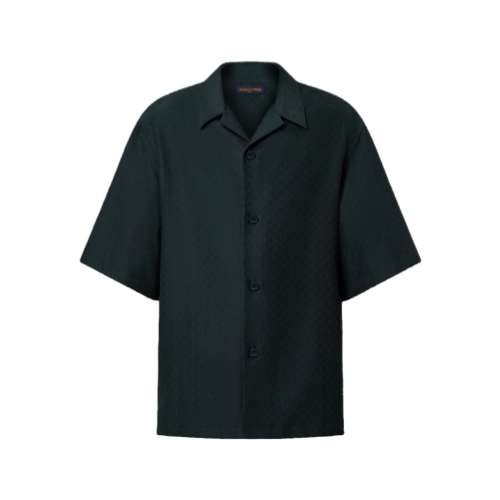 This elegant black short-sleeved shirt is a discerning choice for refined summery occasions. The relaxed silhouette with an easy open collar is crafted from a luxurious silk-cotton blend seersucker with an embossed allover Mini Monogram motif. This contemporary day-to-evening piece can be worn as a set with matching shorts.