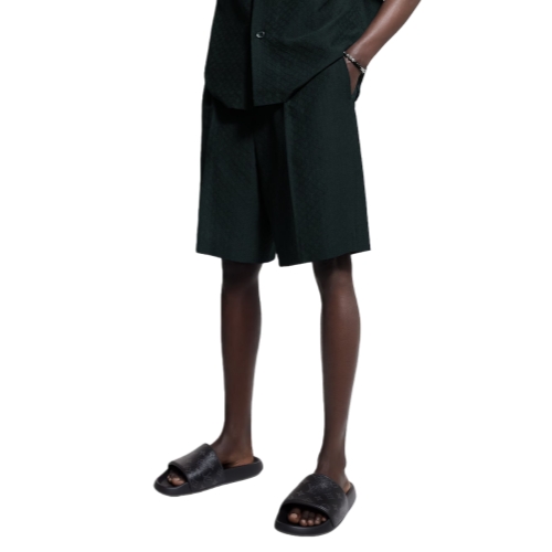 These smart black shorts are tailored from a luxurious silk-cotton blend seersucker featuring an embossed allover Mini Monogram motif. The fluid fabric creates a laidback yet distinguished mood that is perfect for summery occasions. This versatile piece can be paired with a matching shirt to make contemporary day-to-evening set.