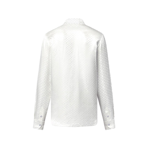 This chic white evening shirt is crafted from pure organic silk. It is elevated with a tone-on-tone allover Mini Monogram jacquard with a subtly textured effect that highlights the fabric’s fluid drape and natural luster. This versatile piece brings a sophisticated signature twist to an evening ensemble.