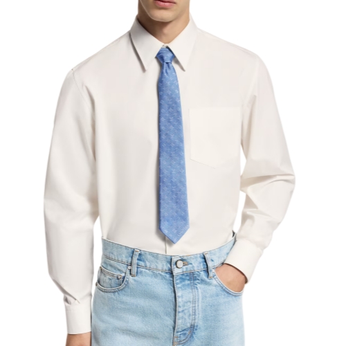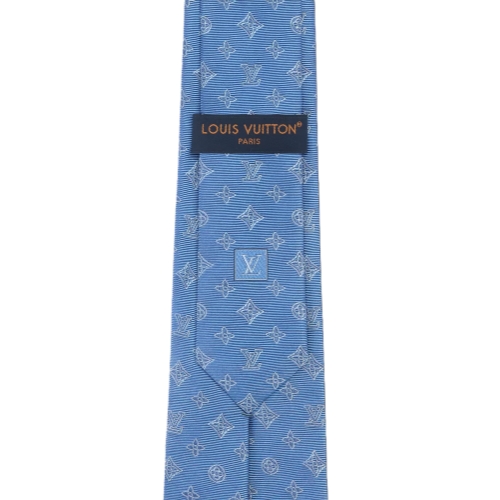 Crafted from pure silk, the Monogram Blast tie captures a boyish energy with a refined approach. Available in a watery blue and a rich navy, the jacquard style is lightly embellished with a lively, and outlined, reimagining of the Monogram and "L. Vuitton" on the diagonal of the tip.
