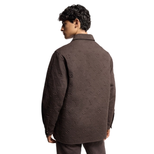This cotton overshirt in classic mid-brown tones draws on the Louis Vuitton savoir-faire with an embossed tone-on-tone Monogram. The subtle allover signature combined with lustrous pearl-effect buttons on the fastening and cuffs brings an elegant dandy accent to this casual silhouette, which makes a distinguished set with matching pants.