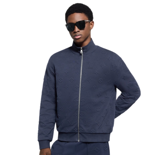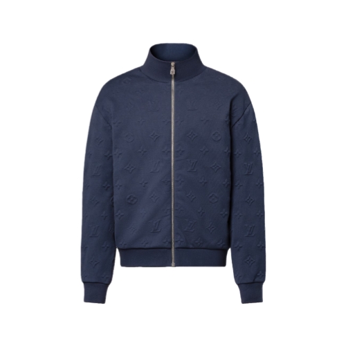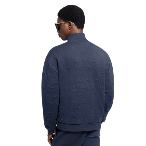 This dark blue cotton-jersey tracksuit top brings a sophisticated signature accent to casual and everyday looks. It is embellished with an allover Monogram motif, incorporated into the soft knit with an embossed effect. An easy piece to mix and match, it makes a chic set with matching pants that is particularly well suited for travel.