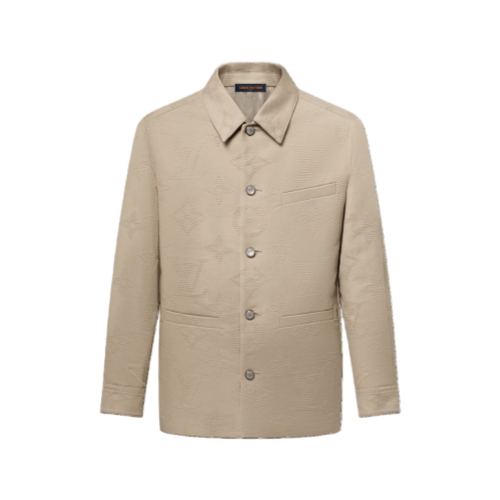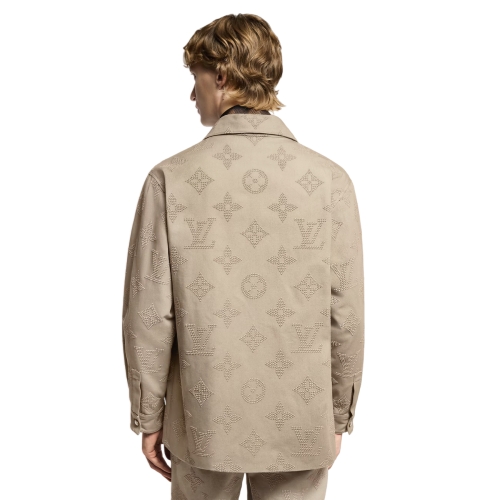 This chic cotton overshirt is adorned with the Spring-Summer 2025 show’s Safari Monogram motif, expressed in tone-on-tone embroidery with a 3D effect. Pearl-effect buttons stand out against the gray tones of this casual yet refined style, which can be paired with matching pants for a signature look.