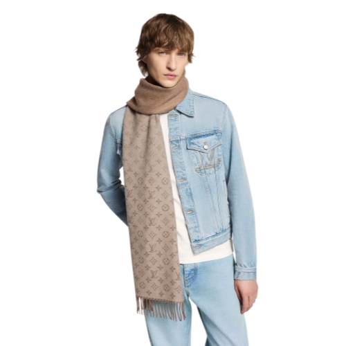 This season, the timeless Monogram Gradient Scarf is available in an elegant new colourway. Crafted from a cosy wool and cashmere blend for a supremely soft feel, it features a Monogram pattern with a striking gradient effect that is achieved through a special weaving technique. Generously sized, it makes the ideal addition to any man’s cold weather wardrobe.