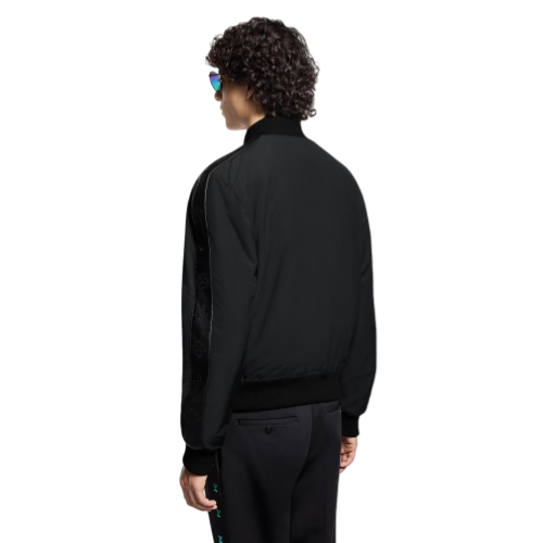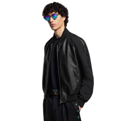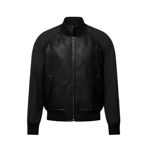 A perfect midseason layer, this contemporary zippered blouson offers a chic take on the tracksuit top. Crafted from light technical wool, it is adorned with supple Napa leather on the front and in bands on the sleeves, which has been meticulously laser-perforated with a Monogram gradient motif.