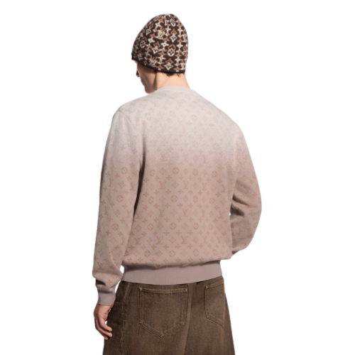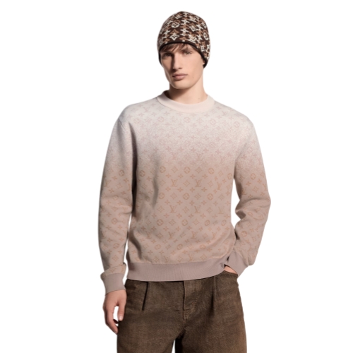 This fine-gauge cotton crewneck features a sophisticated sun-bleached effect inspired by India’s radiant sun and traditional garment-dying traditions. An allover Faded Monogram motif in shifting beige tones is integrated into the jacquard knit with a trompe l’oeil weathered look, bringing a light, graphic signature accent to everyday looks.