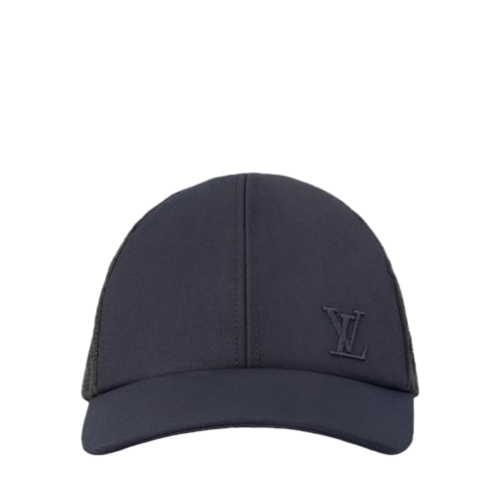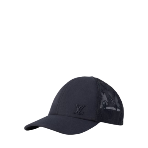 The Monogram Mesh Baseball Cap features an opaque front panel with embroidered LV Initials and a mesh back panel. The hat can be adjusted using the small strap that is a miniature version of the House's iconic calf leather belt. This piece complements the mask cover from the same capsule collection.