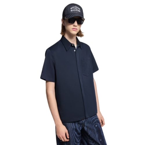 This navy short-sleeved shirt brings a crisp accent to everyday and casual looks. It is crafted from cotton twill with a slight stretch for comfort. A patch pocket on the chest, embellished with an embossed Monogram motif, elevates this versatile style, which pairs with matching shorts to make an effortless yet distinguished set.