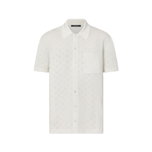 This short-sleeved organic cotton shirt has a soft, tactile quality. It is elevated with a pointelle knit incorporating Monogram signatures to create a delicate lacy effect. This versatile piece comes in a timeless seasonal color with a subtle luster, bringing easy elegance to a summery ensemble.