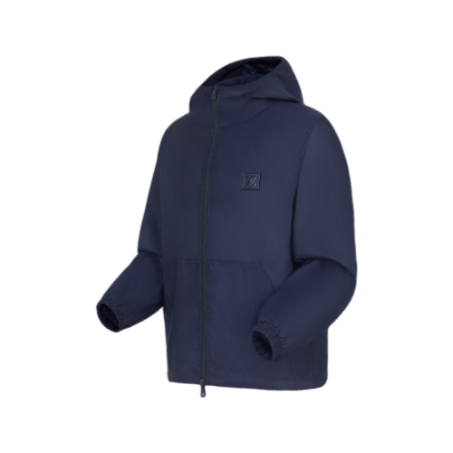 Made from water repellent technical fabric, this elegant reversible windbreaker has a plain matte side enhanced by a leather LV tab on the chest, while the other side features an allover tonal Monogram jacquard. This versatile piece for changeable weather is easy to wear and match, making it a perfect addition to any wardrobe.