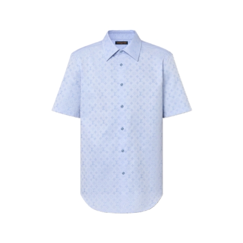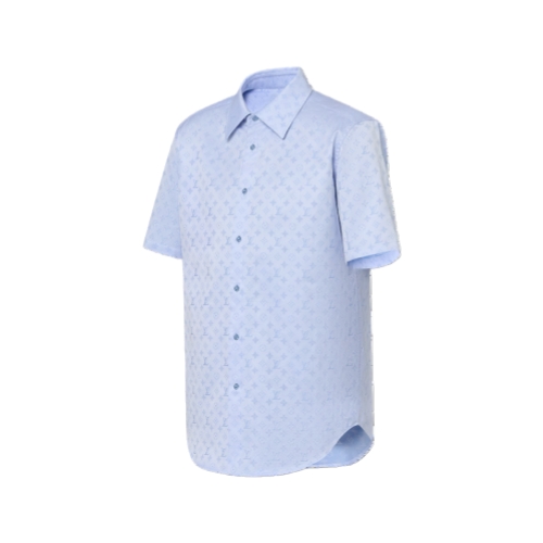 This pale blue short-sleeved shirt is crafted from lustrous organic cotton boasting a subtle tonal Monogram jacquard and a woven signature label at the bottom of the button placket. This is an easy piece to style that brings instant distinction to an ensemble. A wardrobe essential for warmer days in the office.