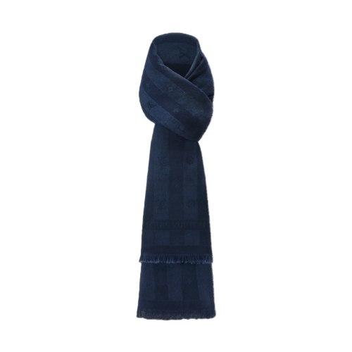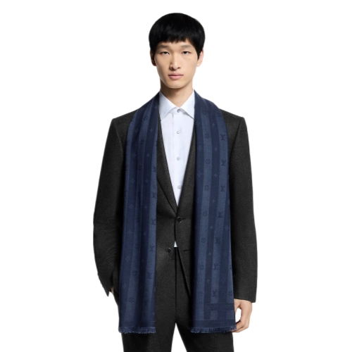The Monogram Stripy Stole is a navy, silk-blend piece that enhances an ensemble with a sense of masculine elegance. Equipped with a Louis Vuitton signature and short fringe, the Italian-made scarf needs nothing more than these small details and a quiet, striped pattern to maximize its appeal.