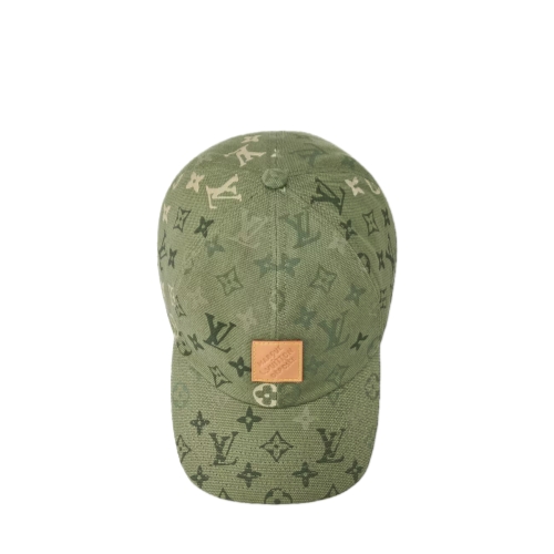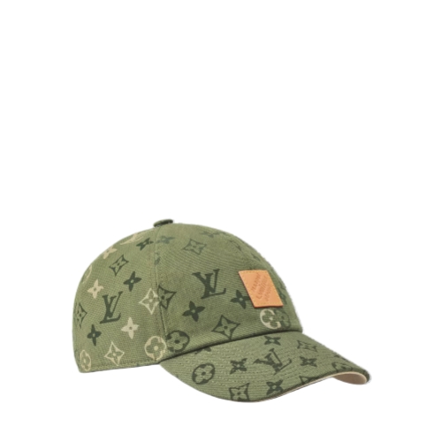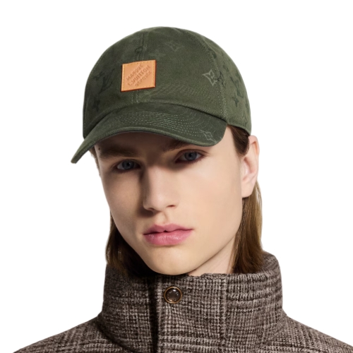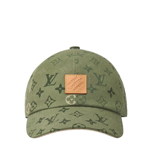 The Italian-made Monogram Surplus cap features a leather patch with the "Marque L.Vuitton Déposée" signature, stitched on a green palette inspired by military fatigues. A casual look for everyday wear adorned with the classic House emblems, the hat is equipped with a adjustable snapback enhanced with the "LV Lovers" signature.