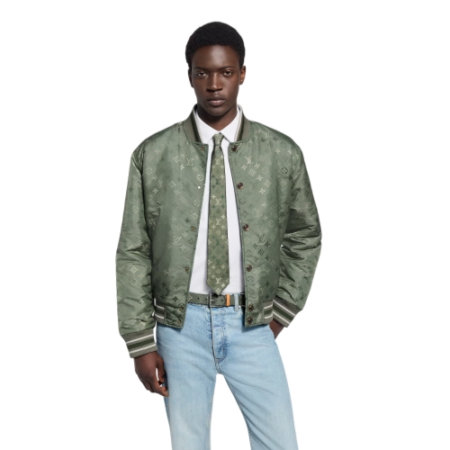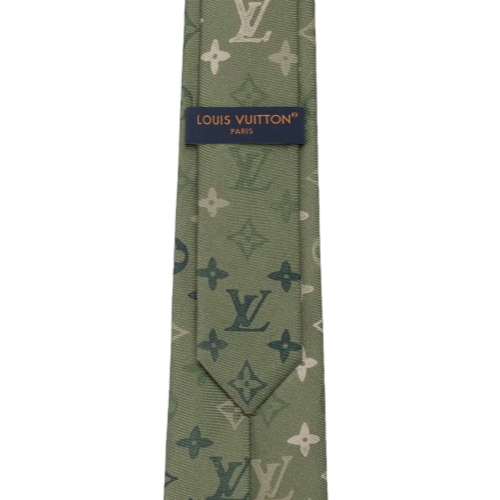 Continuing the pattern that originated in Men's Ready-to-Wear and Leather Goods, the Monogram Surplus tie is a moody style that takes its inspiration from the color palette of military fatigues. Faux-stamped Monogram emblems in a variety of greens infuse this luxurious silk style with self-assurance.