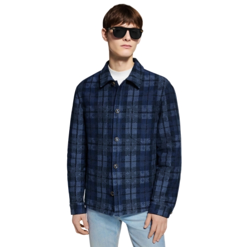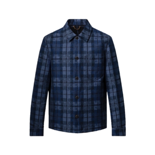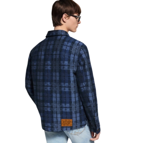 This denim overshirt is elevated with this collection’s Monogram Tartan motif, executed in a sophisticated jacquard in a range of indigo tones. A leather jacqueron with embossed signatures adorns the back. This casual workwear silhouette features two chest pockets – one on the interior and one outside – and can be styled with matching pants for a total look.