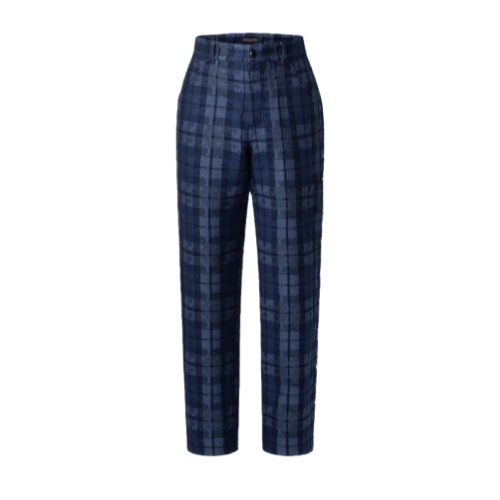 These denim workwear pants are elevated with this collection’s Monogram Tartan motif, executed in a sophisticated indigo jacquard. Workwear details include a leather jacqueron with embossed signatures on the rear waist, a patch pocket on the left leg and a hammer loop. A black pearl-effect button and rivets add a chic twist. Pair with a matching overshirt for a standout set.