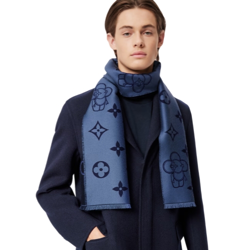 The elegant Vivienne scarf is a stylish choice for fans of the globetrotting House mascot. This sumptuous wool scarf features a new iteration of the iconic Monogram pattern, incorporating Vivienne for the first time. The contrasting two-tone fabric and short fringed finish elevate this cold-weather staple.