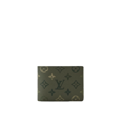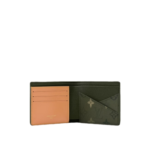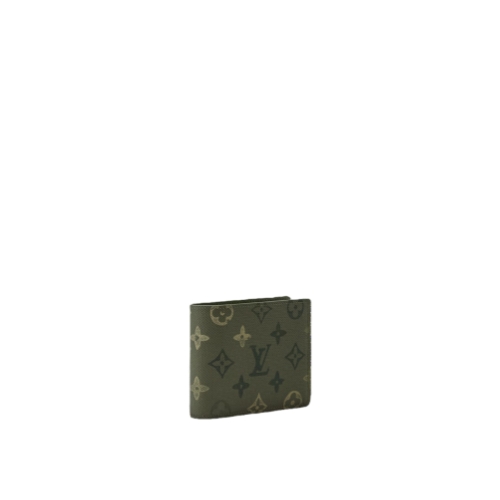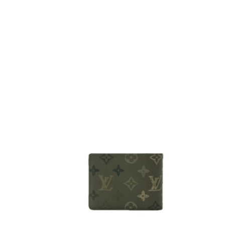 Monogram Surplus coated canvas, Pharrell Williams’ latest reimagining of the Monogram, brings a fresh energy to this functional Multiple Wallet. The nuanced green treatment of the Monogram Flowers and LVs gives the canvas a camouflage feel. Pocket-sized yet practical, it features five card slots, two bill compartments, and two side slots for receipts.