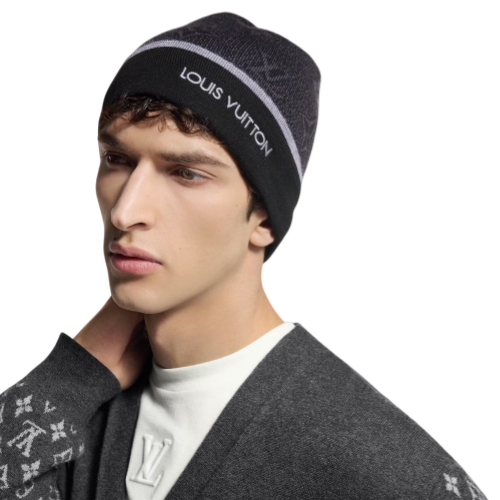 A unique jacquard weave technique was used to create the My Monogram Eclipse hat. Juxtaposed in contrasting tones, the edges of this masculine design and an embroidered Louis Vuitton signature at the bottom provide refined accents. This pure wool hat features a versatile interpretation of the Monogram Eclipse pattern.