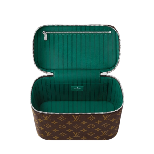 Inspired by the House’s vintage Nice Vanity case, the Nice BB is an elegant vanity made from Monogram Macassar canvas. The earthy colorway is livened up with vivid color on the leather piping and top handle, as well as the washable lining. There’s an inside flat pocket and a secret zipped pocket under the top flap.