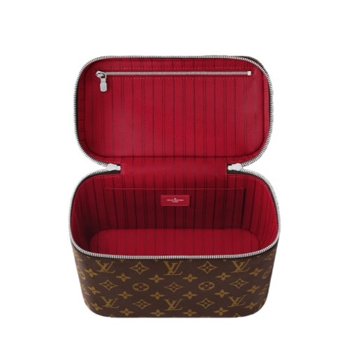 Inspired by the House’s vintage Nice Vanity case, the Nice BB is an elegant vanity made from Monogram Macassar canvas. The earthy colorway is livened up with vivid color on the leather piping and top handle, as well as the washable lining. There’s an inside flat pocket and a secret zipped pocket under the top flap.