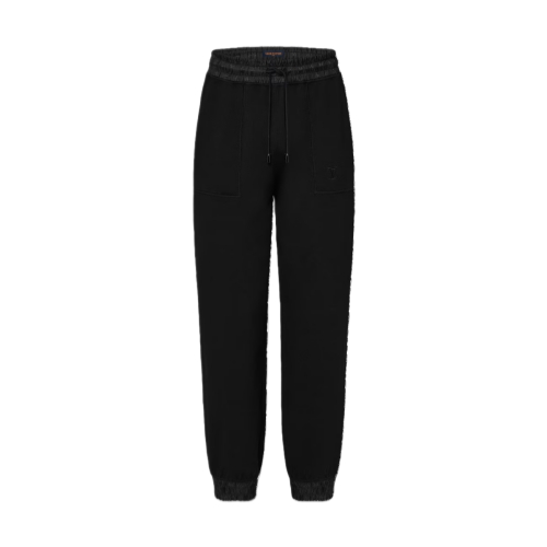 These jogging pants in a compact cotton knit are given a distinctive twist with their elasticated drawstring waist and cuffs, which are embellished with a shiny technical fabric featuring the Monogram motif. A thick cordon drawstring makes them fully adjustable. An embroidered LV signature on the front left patch pocket adds a smart finishing touch.