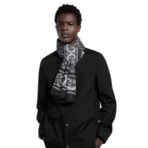 Crafted in a cotton-silk blend, the Paisley stole fuses a handful of House icons to create a style unmatched in its elegance. An ornate paisley motif lines the edges and appears in the center in a skewed square that envelops the initials; the background is comprised of the checkered Damier print.
