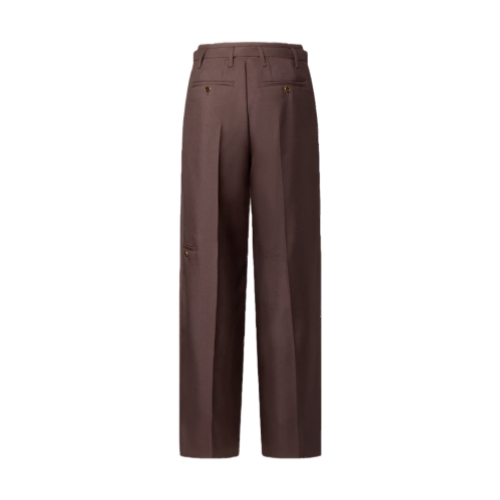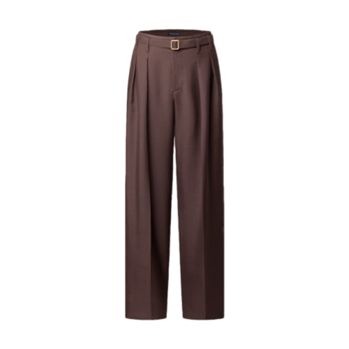 These belted pants, crafted from fine mohair suiting in rich brown tones, embody the effortless elegance of the Spring-Summer 2026 show. Pleats on the front create a fluid silhouette, while signature embroidery adorns a rear pocket. This is an essential piece for completing this season’s timeless looks.