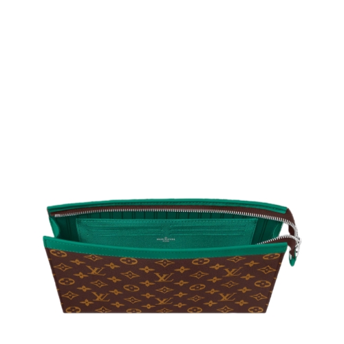The versatile Pochette Voyage MM is made from Monogram Macassar coated canvas, with colored leather trim and a matching-colored lining. Ideal for organizing items inside a suitcase, it can also be carried as a clutch bag. The zipped closure, interior card slots, and inside flat pocket make it a practical pouch.