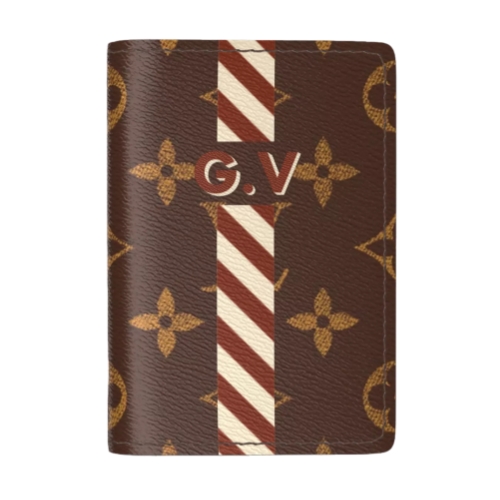 As part of the Mon Monogram offer, the Pocket Organizer compact wallet in Monogram canvas can be customized with decorative details to make it unique. Stripes and initials, even Louis Vuitton patches, can be added to the design to create a wallet that combines style with practicality.