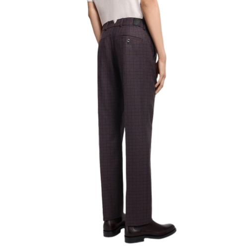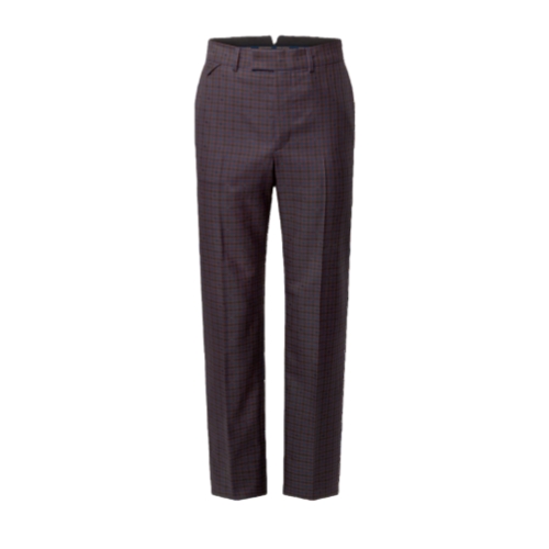 These elegant tailored pants are crafted from certified wool featuring a checkered Monogram Vichy jacquard in warm Burgundy tones. An LV-embroidered triangular tab accents the right hip, while a Marque L.Vuitton Déposée label signs the rear waistband. These pants can be paired with a softly structured single-breasted jacket to make a contemporary daytime suit.